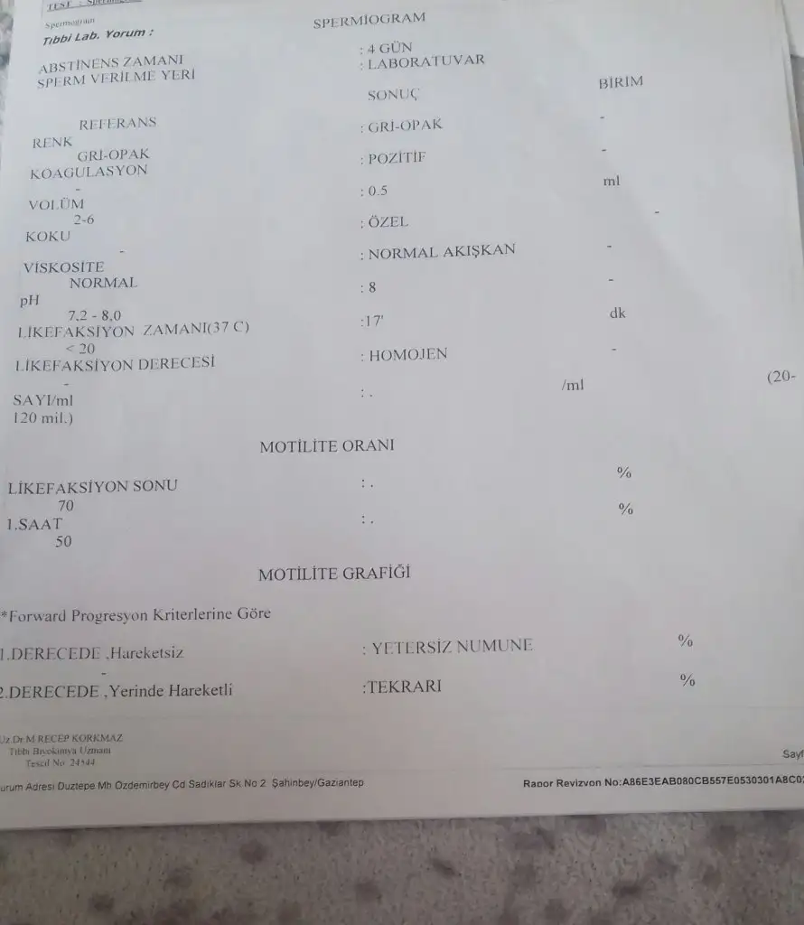 Volüm çok az eşiniz tekrar test versin aynı sonuç çıkarda hormon değerlerine baktırın hormon normalse tıkanıklık vardır onun içinde trankasyon ultrason çektirsin tıkanıklık varsa orda tespit edilirkizlar banada yardim edin bu sperm sonucumuz azosperm dedi dr bisey anlatmadan direk tüp bebek dedi canim cok sıkkın Eki Görüntüle 2654547