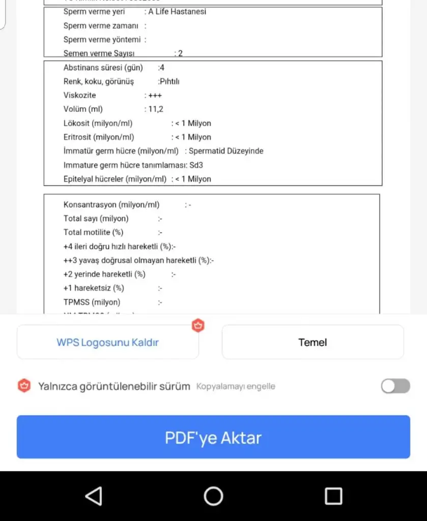 Maalesef ki yoğunluğu asla ama asla yönetemiyorlar, sürekli randevularda duraksama, kapanma yaşanıyor. Daha önce de 2 kez benzer bir durum oldu. Şu an günlük aşırı sayıda spermiyogram almaya ısrarla devam ettikleri için tanklar dolmuş, yeniden ne zaman randevular açılır belli değil.