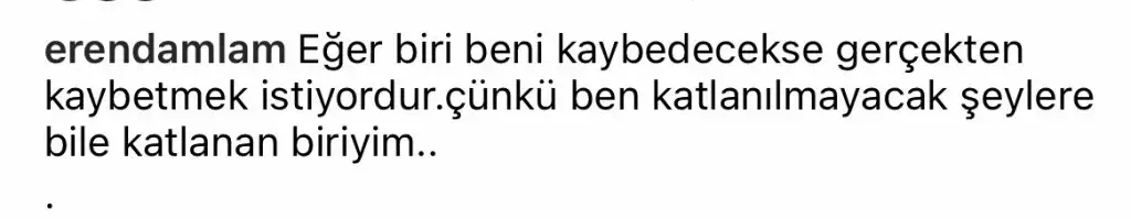 Bugun bosanma lafi yokken benim küs olmam gerekirken ( dün bahsettigim arkadasina kiyafet gondermesinden dolayi) baktim o da küs.. hic bit sey yapmadim ciktim ise gittim bizim ortak instagram hesabimiz var oradan şu yaziyi paylasmis.. o masum ben kotuyum onun gozunde..
