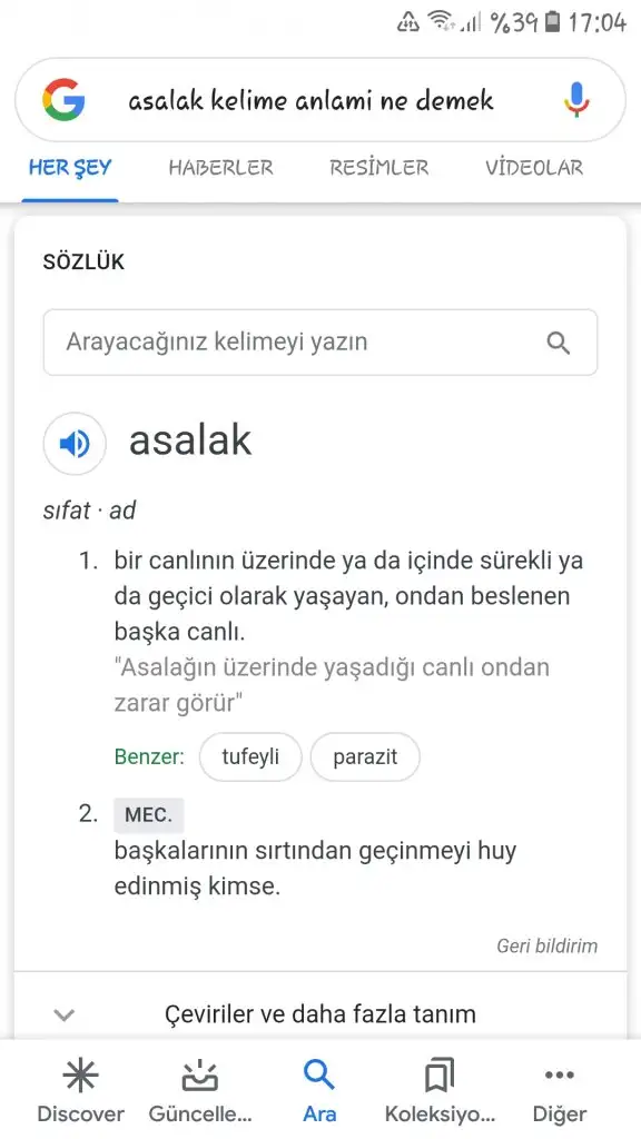 Ee derim çünkü asalak kelimesinin anlamını biliyorum ve de cümle içinde kullanıyorum :))))