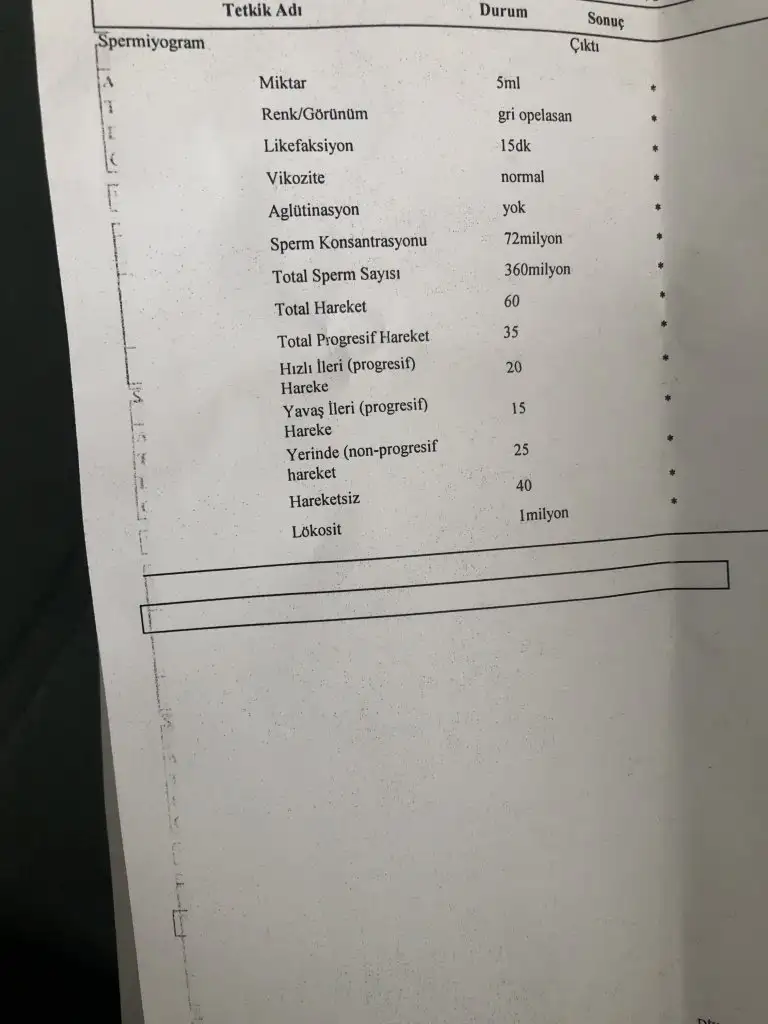 Erkek İnfertilitesieşim için açtım bu soruyu eşim sperm testi verdi tahlilleri aldık ama doktor olmadığı için gösteremedik bilen varsa yorumlayabilir mi