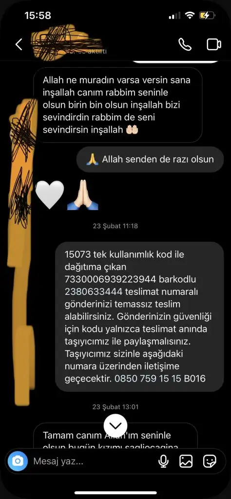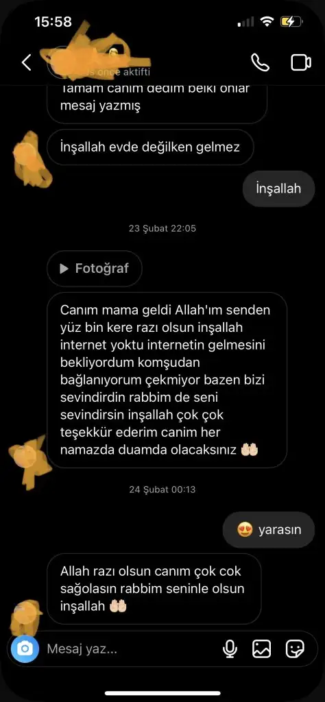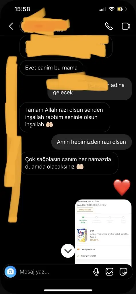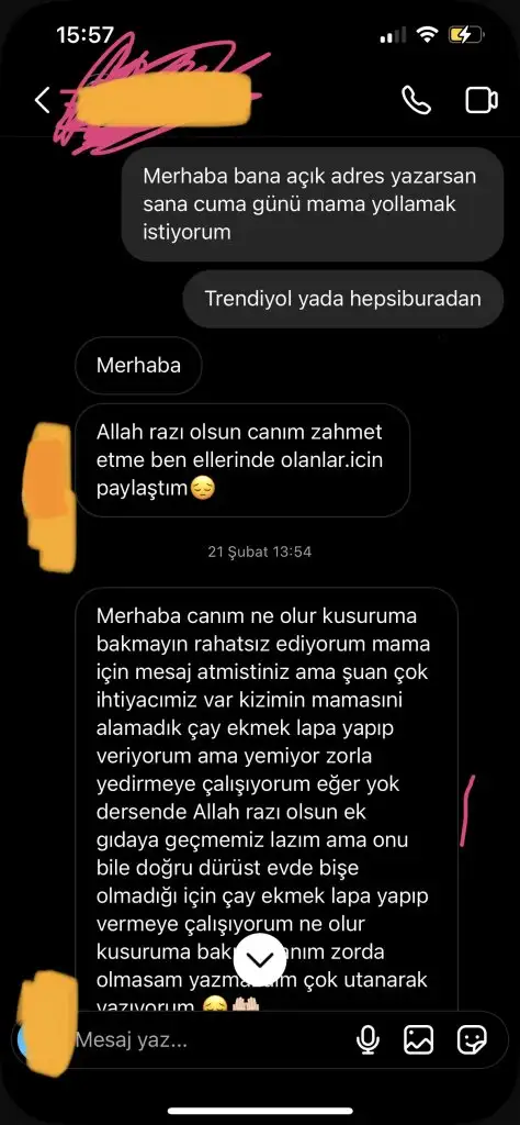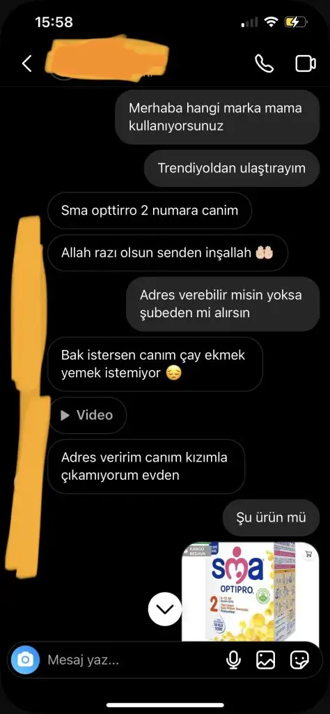 Yeni doğum yapmış mama alamamış bebeğine bende içim cız etti benimde oğlum var kadına yardımcı olmak amacı ile mama göndermek istedim oda çok teşekkür edip kabul edemeyeceğini ellerinde olan varsa diye yazdığını söyledi saygıyla karşıladım kapattım konuyu aradan 9 ay sonra tekrar mesaj attı aşşağıda konuşmalar mevcut bende dedim ki o zaman kabul etmemişti şuan zor durumda demekki deyip yolladım mama buraya kadar hiç problem yok ama dün eşimle instagramdan reels videoları izlerken aşşağıda bir resim daha var onu gördük bende anlattım herşeyi oda diyor ki dolandırılmışsın