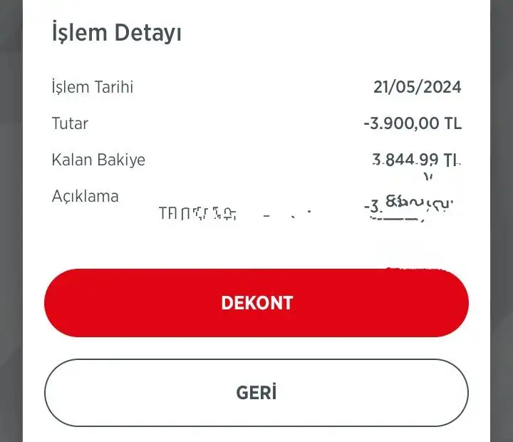 Merakımdan kendi bankama baktım hesap hareketleri bölümünde üstüne basınca dekont çıktı.o donemde yani 2021 de ben instadan bi urun almistim ve dekontunu da sayfa sahibine gondermistim. az once instada mesajlardan o dekonta baktim aciklama kismina aldigim urunu yazip ucretini yazmisim ama banka musteri hizmetlerinin bana verdigi listede aciklama kisminda bisey yazmiyor.