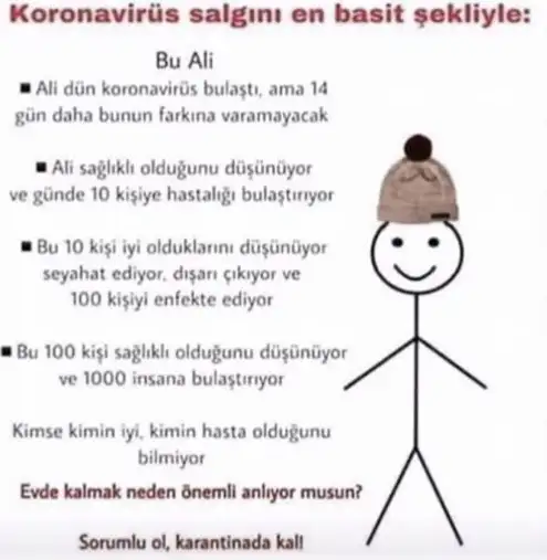 Arkadaşım sen o yola gideceksin onca şeyle temas edeceksin annenin evine gideceksin.Belki de yolda kapacaksın virüsü ve onlara geçireceksin.Ailemde evden hickimse cikmiyo abim esimle birlikte calisiyo ikiside disardan geliyo onada ben bakiyorum ne yapayim