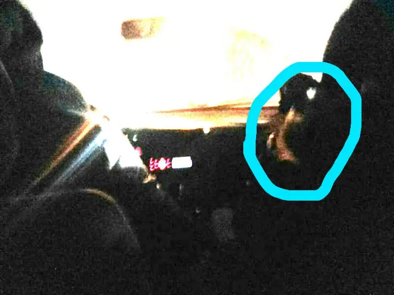 Işığın dikiz aynasını teğet geçtiği nokta. Tam dikiz aynasıyla ışığın kesiştiği noktaya dikkatli bakın. Arkadaki kadın sureti belli. Su dalgası saçları var ve sarışın. Dudağında koyu renk ruj var. Çok net belli. Dikkatli bakın. Telefonu öne eğin yukardan bakın fotoya. Sonra yavaş yavaş uzaklaştırın telefonu ve simayı seçin. Ön koltukta kadın mı erkek mi bilemedim ama arkada kadın var ....