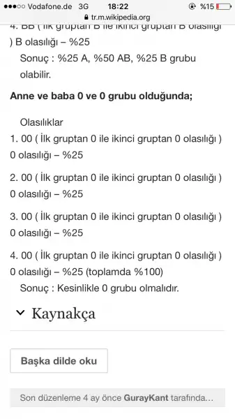 Ama 0 da öyle bir şey yok 0 olan kişi 00 dır ve çocuğuna yalnızca 0 geni verebilir. Çocuğun 0 dan başka ihtimali yok