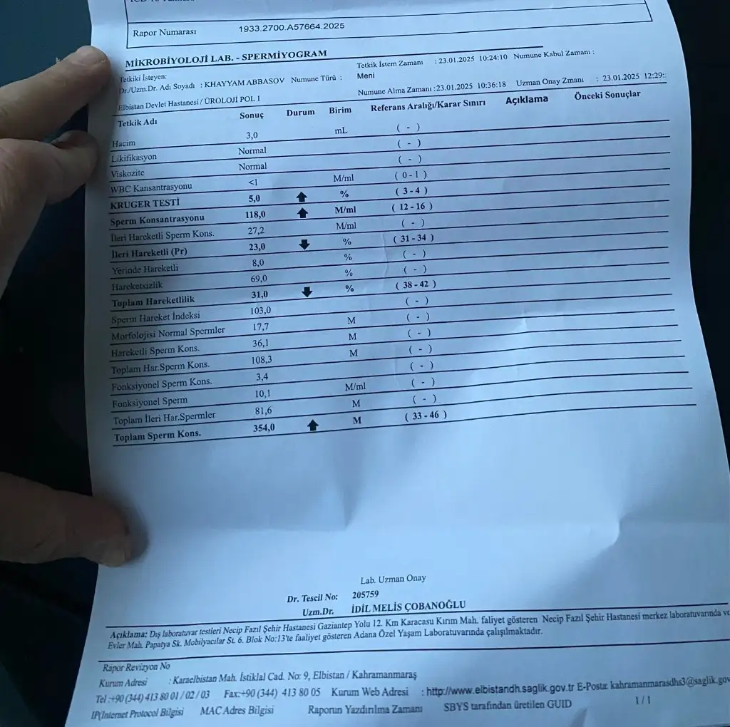 eşimle gebe kalmaya çalışıyoruz.8 aydır evliyiz Bir sıkıntı çıkarsa diye eşime sperm testi yaptırdık. Sayı ve hareketlilik güzel duruyor Testi yorumlama şansınız var mı? Önlem almak gerekir mi yoksa herşey yolunda mı? Şimdiden cevaplar için teşekkürler.