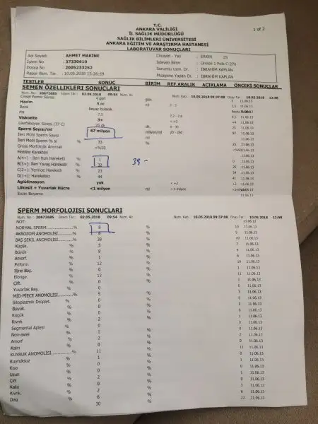 Gebeliğe Hazırlık Eşimin sperm sonuclari(bilen arkadaslardan yorum beiyorum)