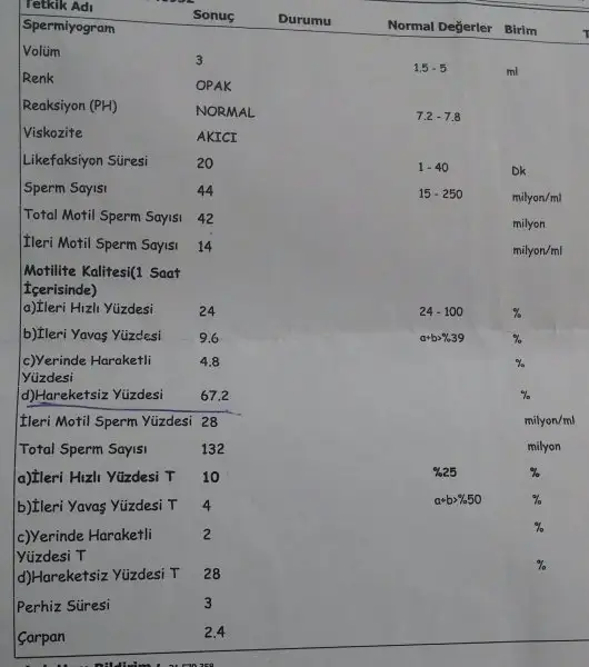 canım eşimin test sonucu bi bakar mısın ?
