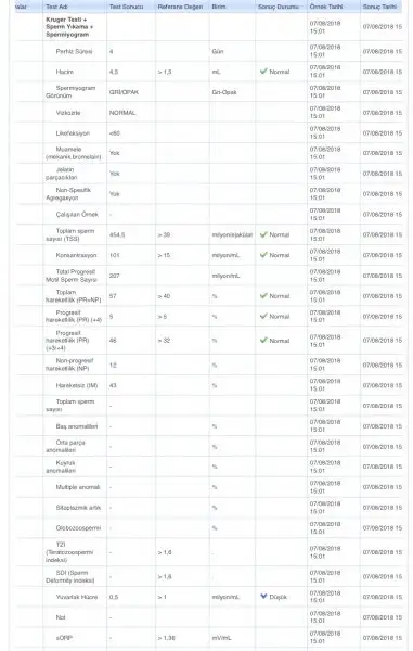 Toplam sperm sayısı 454,4 milyon/ejakülat