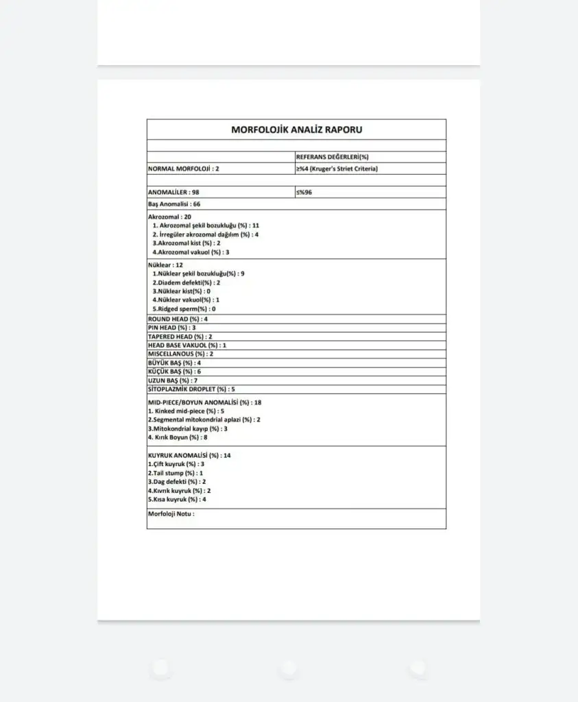 Hiç anlamıyorum canım doktor daha birşey demediyse üzme kendini bende üzdüm birşey var diye yokmuş şükürArkadaşlar eşimin test sonuçları değerlendirirmisiniz ? Ve morfoloji bozukluğu olup hamile kalan var mı