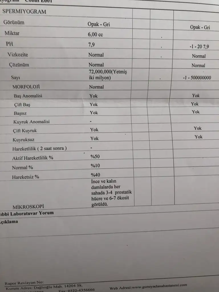 Gebeliğe Hazırlık Eşimin spermiyogram testini yorumlar mısınız?