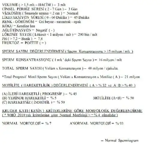 Bu tek başına yeterli değil sperm DNA hasarı testi de var 20 günde çıkan bir test. Eğer yüzde 20 üzeri hasat varsa sayı hız normal olsa da çocuk olmsz