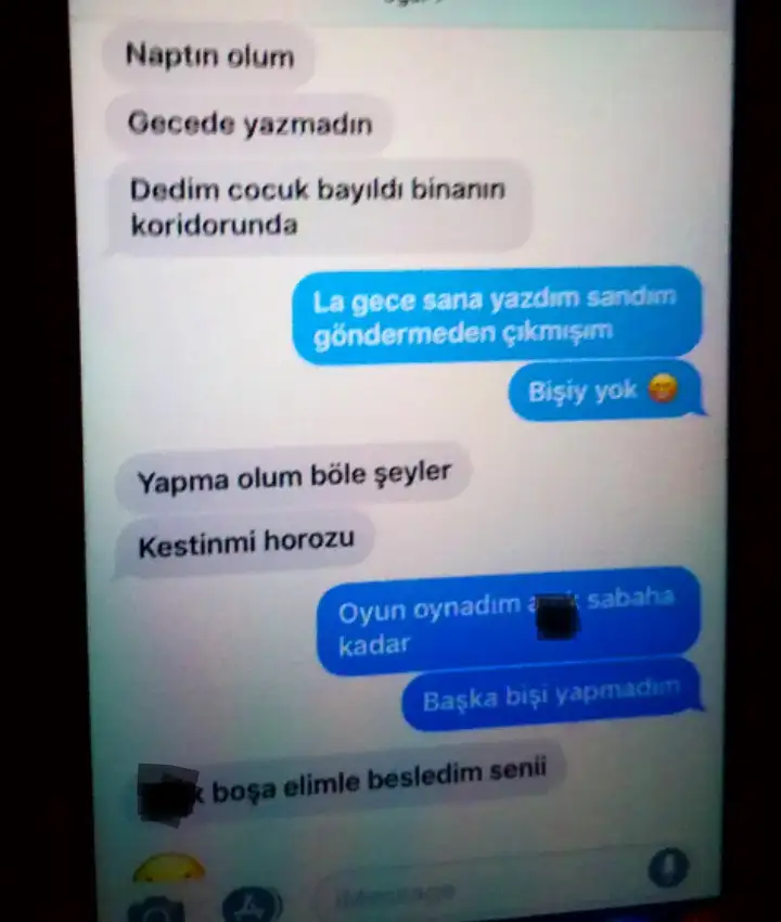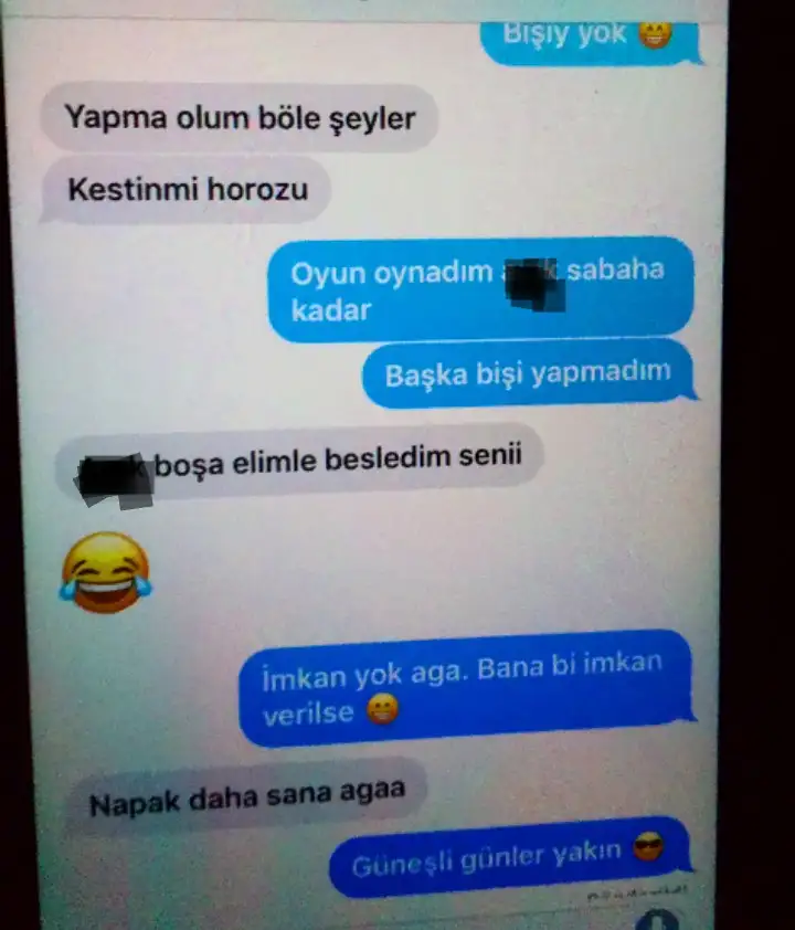 Ama eminim siz de her insan gibi küfürü bilip etkilenmiyosunuz... Bence bu yüzden şifreli konuşuyolar. Sakın uyumayınBilir evet bir daha karıştırmıcam demiştim ama tahmin ediyodur ve aykutla mesajlaşıyorum demişti ama sen okuma küfürlü konuştuk filan demişti