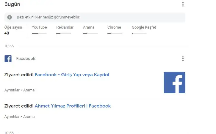 benim anlamadığım bir kısım var. etkinlik kısmında sadece "facebook" mu var yoksa facebook'ta birinin ismini mi aratmış? iyi de bu hesabı olduğu anlamına gelmiyor ki. benim hesabım yok mesela ama google'da bi isim sallayıp arattığımda ilk önce o isimli kişilerin facebook hesabı çıkıyor. siteye giriş yapmasam da etkinlikte giriş yapılmış gibi görünüyor. görsele bi bakar mısınız?