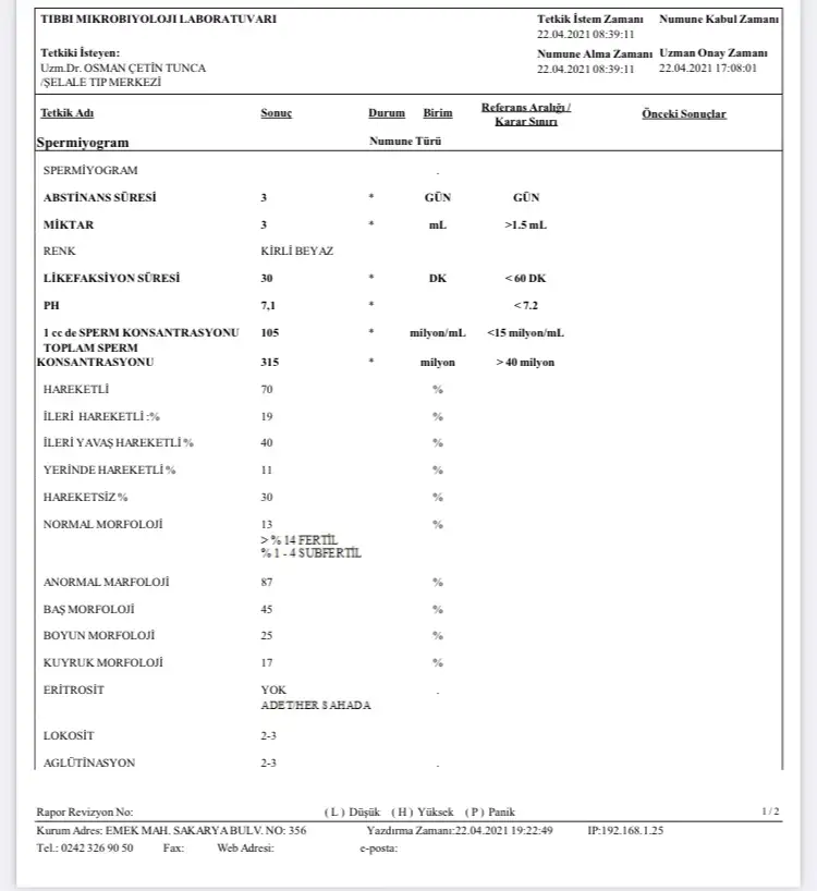 Ben test sonucunu tekrar inceledim 1 ml deki sperm sayisinn referans araliğı 15 mis normali zatan 15-200 milyon olmasiymis asil onemli olan ejakülat başına olan sperm 39 dan az ise duşük kabul ediliyor bizim 78,4 normal yani.Teşekkür ederim yorum yaptiğiniz için sayenizde bende dikatli incelemiş oldum🤗