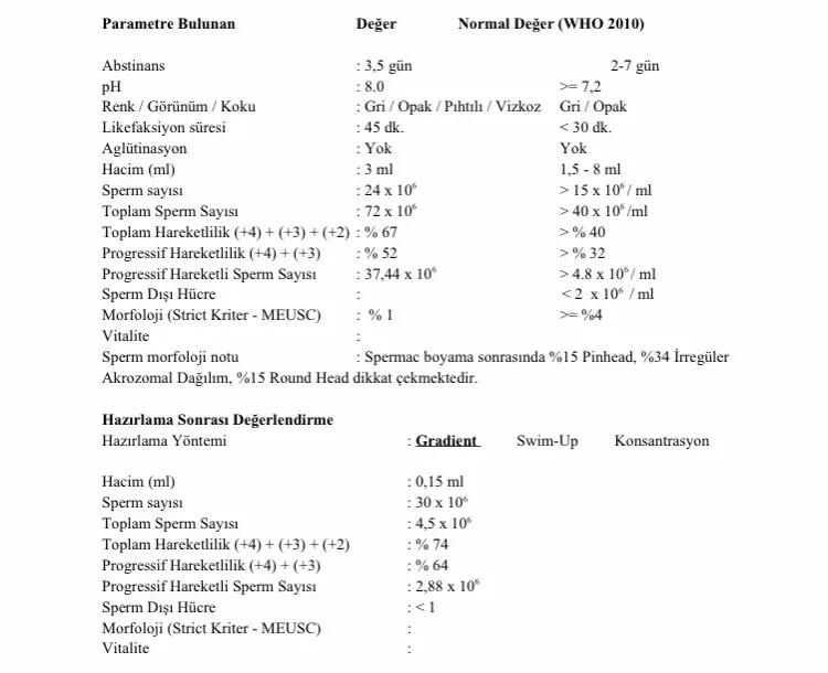 Seni cok iyi anlıyorum canım 7. Aydaydik denememizin esimin ilk testi çıktığında yurtdisinda zaten covidden her sey kisitliydi ingikizce test turk doktorlariyla online görüşmeye basladim delirmiş gibi araştırmalar yaptim. Bazi doktorlar testi anladi bazısı anlamadi morfoloji cok büyük bir sorun sandim olmama sebebi o. Oyuzden esime bir cok takviye verdim yedirdim içirdim rabbime sukur morfoloji sayi hiz hepsi yükseldi ama bak yine de olmadi . Ben cok kaygılı ve stresliydim bu konuya kafamı cok taktim 10 ayi doldurduk denemekte ben dünyayı basima yıktım esime de ayni şekilde bu stresle olmasini zaten beklemiyorum. Simdi cok rahatım üstümden yuk kalktı tamamen 0rabbime emanet dilemişse verecek nasipte varsa yoksa zaten vermiş olduğu sayısız mucizeye bin şükür..