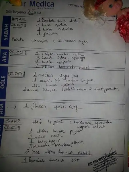 doktorun özellikle bana söylediği şey tüm gün aç kaldığımız için asla birden iftar sofrasına dalmamak.bir çorba ve soda yarım saatlık yuruyus sonrası iftar yemeğini yiyebilirsin dedi.çünkü kan şekeri birden çıkıyor ve vucudun dengesi bozuluyormuş.