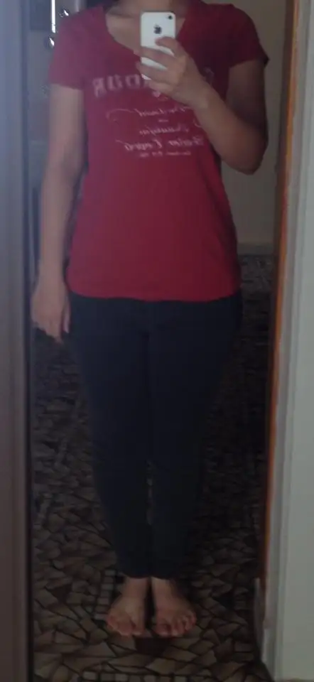 05.09.2015 tarihinde çekilmiş fotoğrafım. Üst kısmım kolay zayıflıyor ancak basenim var ve bacaklarım kalın. :) Yandan da atmayı istiyordum ama telefondan halledemedim o da başka zamana :D