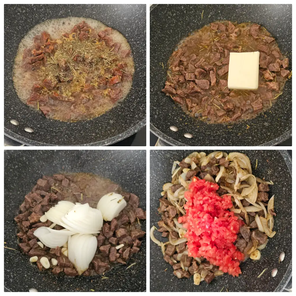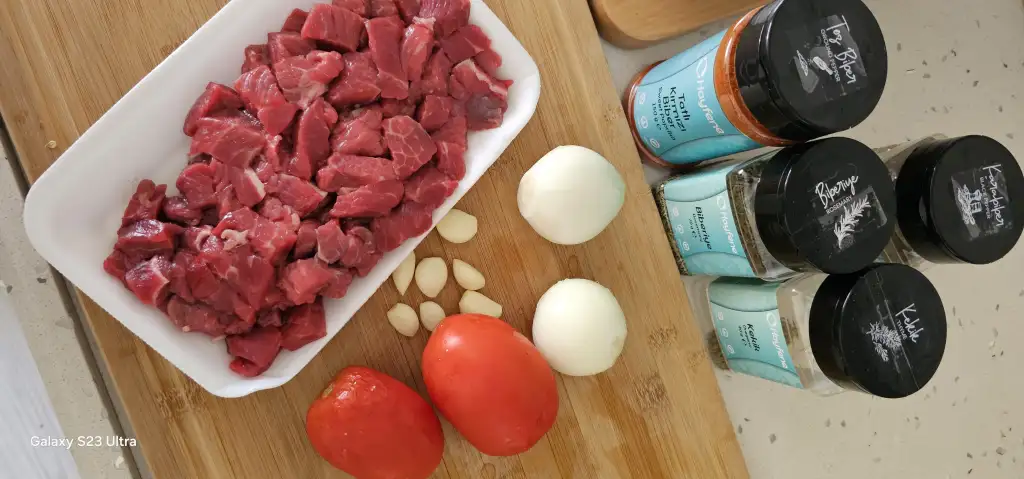 Baharat, tereyağ, soğan, sarımsak ve domatesi sırayla ekledim