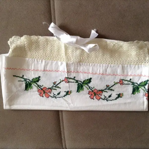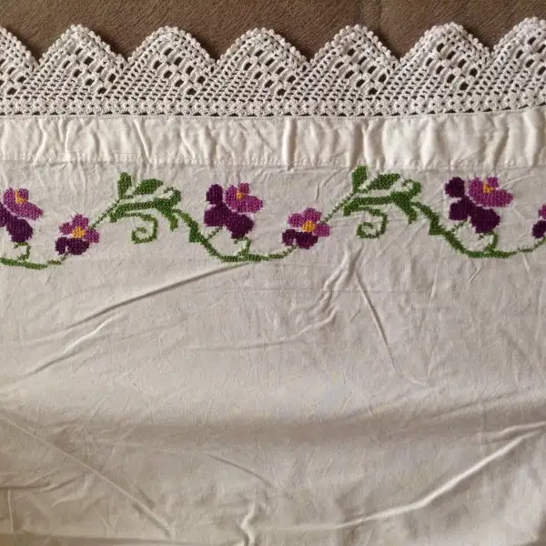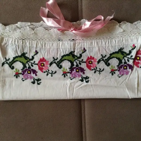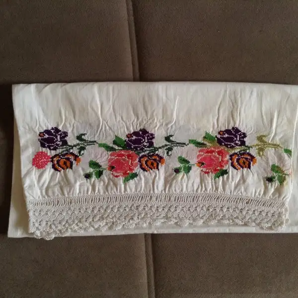 Kullanmadığım ıcın kaldırmıştım ütü yapılmıştı ama kırışmış beğenirsen ütülü gonderırım çarşaf ve yastık kılıfına işleme bir tanesı makine diğerlerı el emeği