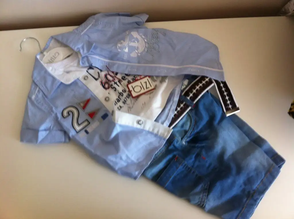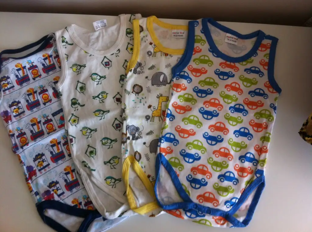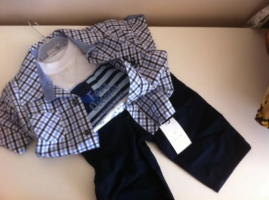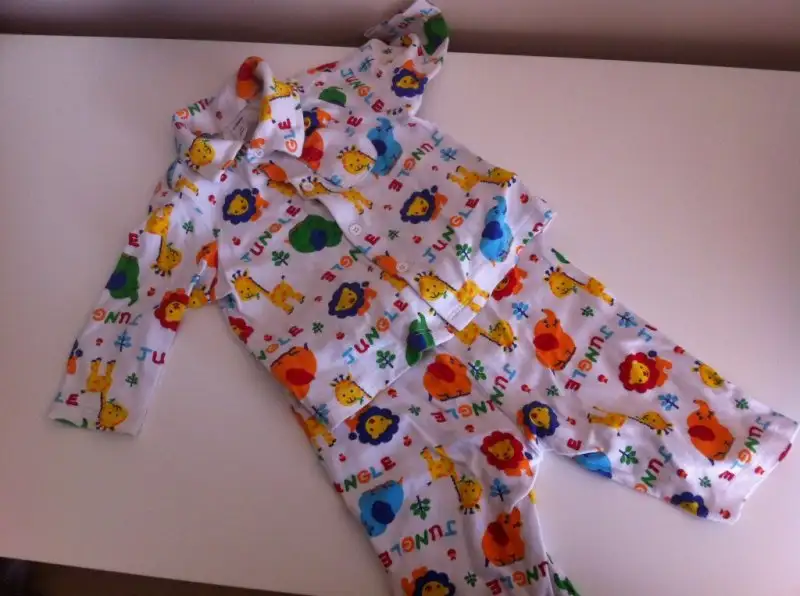 Kadife takım, penyeyelekler, şişme Yelek, lacivert ve yeşil alt eşofmanlar, köpek balıklı ve siyah beyaz çizgili bodyler, jungle desenli pijama takımı satılmıştır.