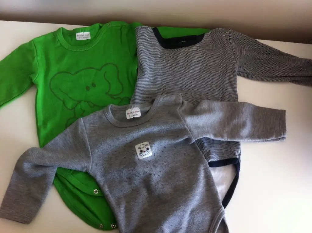 Motherlove- 6/9 ay/ kullanılmış/ yakası lekeli, pratiğinde ufak delik var. Ikisi 5 lira