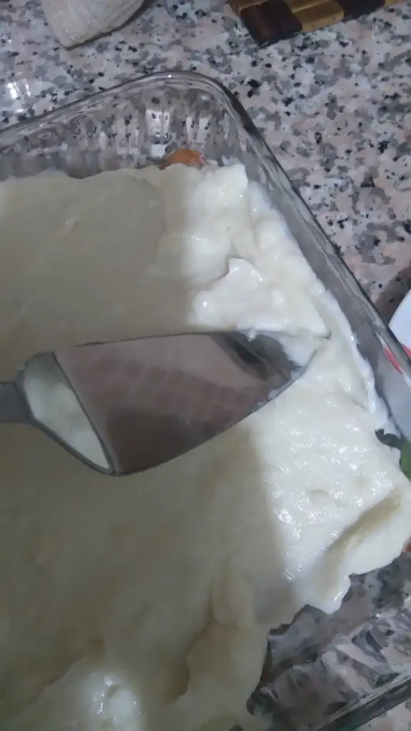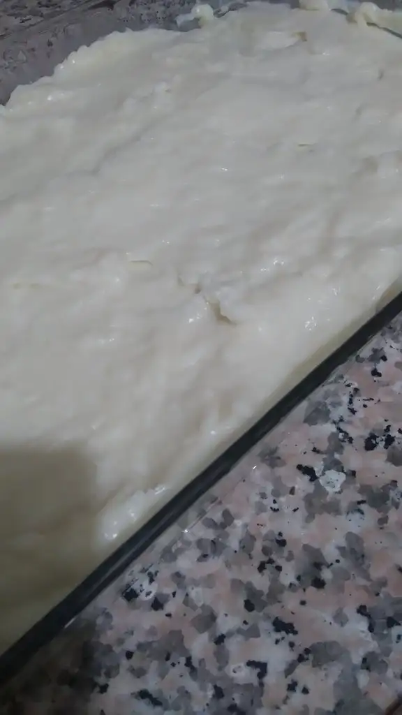Dinlendiktendikten sonra muhallebiyi etimeklerin üzerine döküp, spatula yardımı ile eşit olarak yayın.