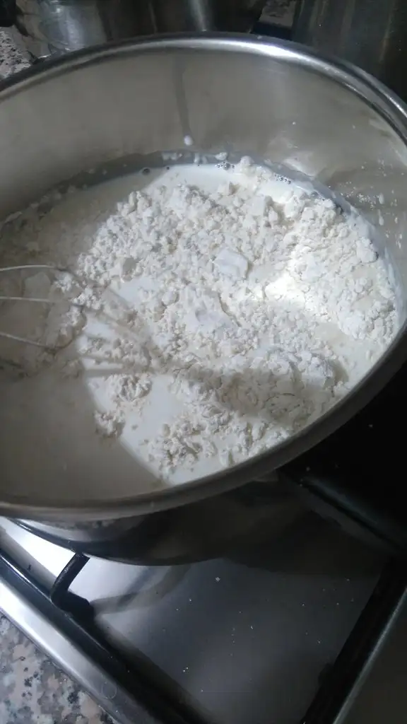 Etimek tatlısın muhallebisi için; derin bir tencereye 1 litre süt koyun. Üzerine 6 yemek kaşığı un, 6 yemek kaşığı şeker ve 2 buçuk yemek kaşığı mısır nişastası ilave edin. Ardından hazırladığınız muhallebiyi ocağa alın. Muhallebiyi sürekli karıştırarak, koyulaşana kadar kısık ateşte pişirin.