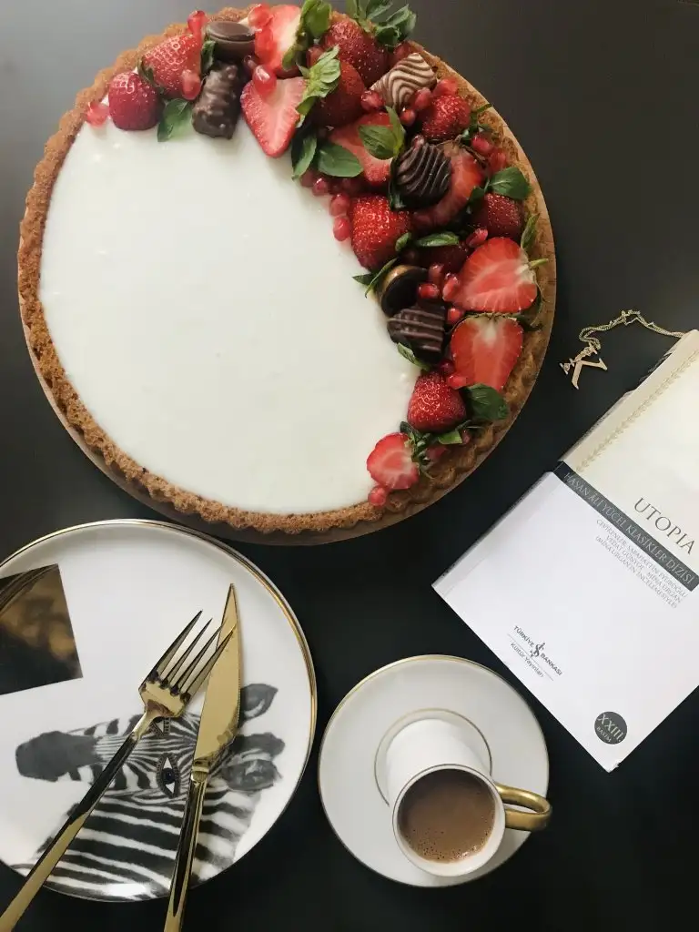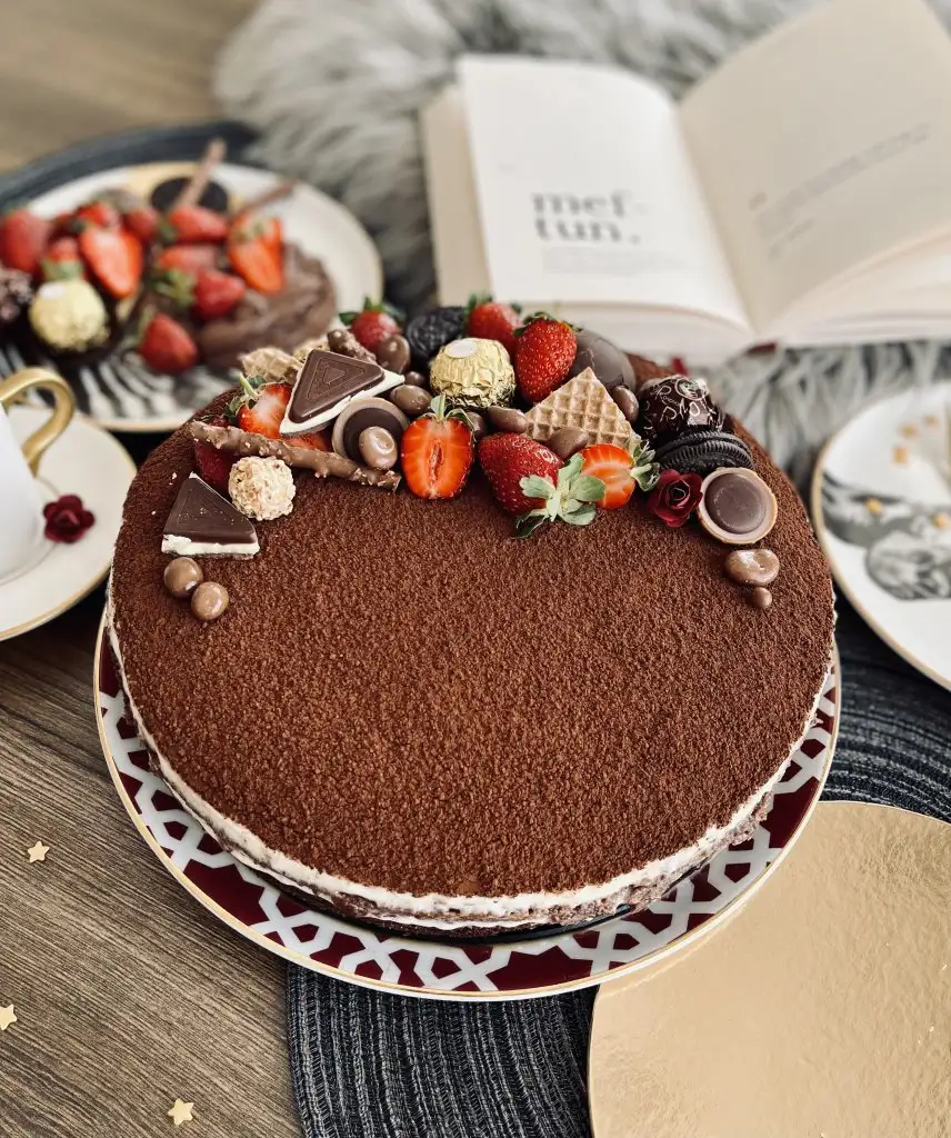• Üzerini streç film ile kapatarak buz dolabına kaldırdım. Biraz bekledikten sonra süsleyerek servis yaptım. Afiyet olsun. 🥰
