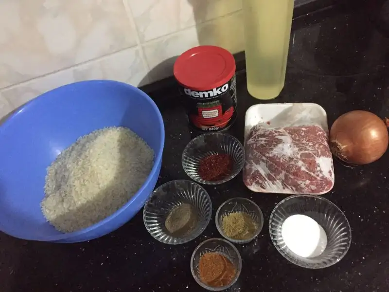 Sogani dograyip maydabozu dograyip icine pirinci kiymayi sacayi siviyagi ve baharatlari ekleyio tuzuda koyuo ic harcini yapalim.tuzu zevkimize gore ekleyelim.Sebzeleri oyup iclerine harctan yeteri kadar koyalim ve sekildeki gibi tencereye sık bir sekilde dizelimki dagilma olmasın...