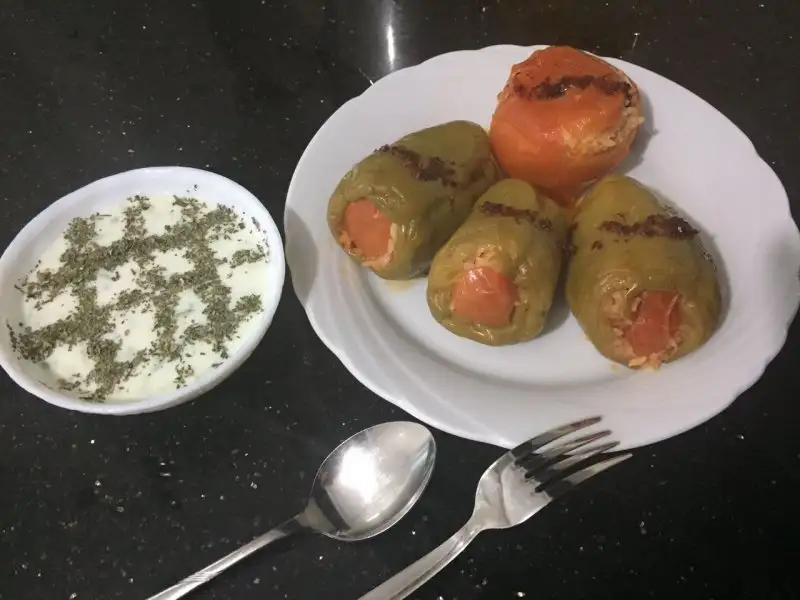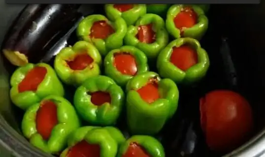 Ilk once sebzeleri yikayip domates biber ve patlicanin iclerini cikaralim. Patlicanlari 2ye bolup yapiyorum.domateslerin ust kapak dedigim kismi yariya kadar kesiyorum yani tam koparmiyorum oyle yapmanizi tavsiye ederim. Biberlerinde sapini cikardiktan sonra en icini doldurup domatesten kestigim parcalarla uzerini kapatiyorum.Eki Görüntüle 1946818 Eki Görüntüle 1946819