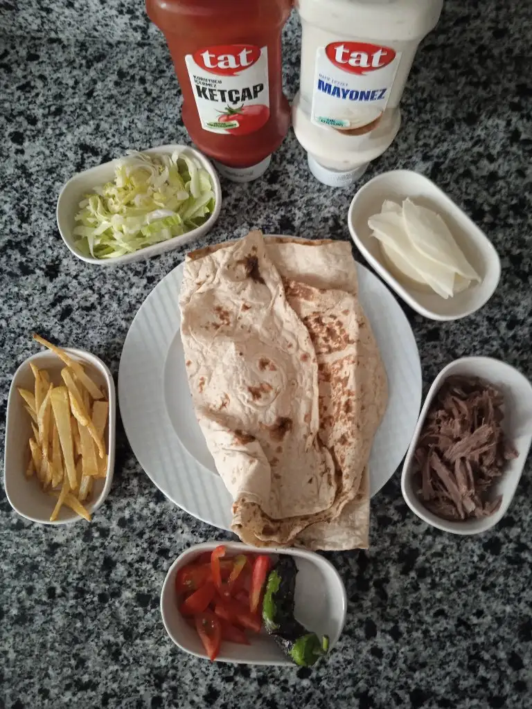 Diyet yapan yoldaşlarım denemek isterseniz içini mayonez yerine yoğurt,patatesi de kızartmak yerine firinlayarakda kullanabilirsiniz, lavaşıda ince aldinizmi gayet yenilesi olabilir,benim vaktim kısıtlıydı.