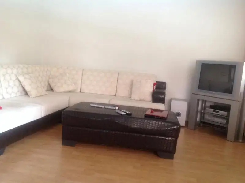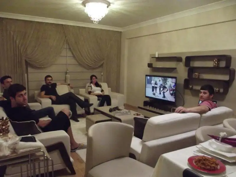 Koltuklarımızın biri lacivert biri açık gri renginde. Mobilyanın cilası acı kahve. Parkeler daha orta tonda bir kahve. Evin bir duvarını gri renkte taş döşedik. O duvara televizyon ünitesi düşünüyoruz.