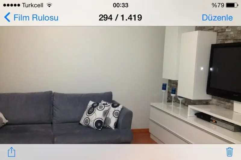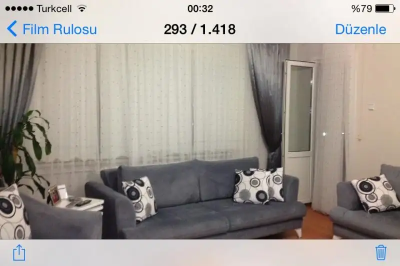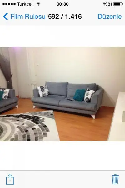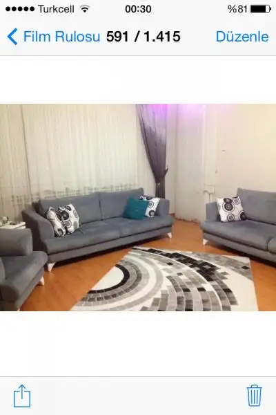 Ancak sanki çok gri oldu koltuklar perde halı turkuaz kırlentlerle renkledirmeye çalıştım