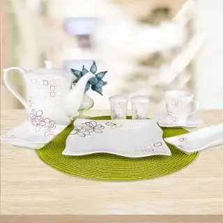 Kahvalti takimi karacanin resimde daha az parca görünüyor 40 kusur parcasi var diye hatrliyorum 3 takim tabak fincanlari pecetelik tuzluk kasiklar caydanlik sekerlik vs istersen kendi resimlerni cekebilirim elimdekileri