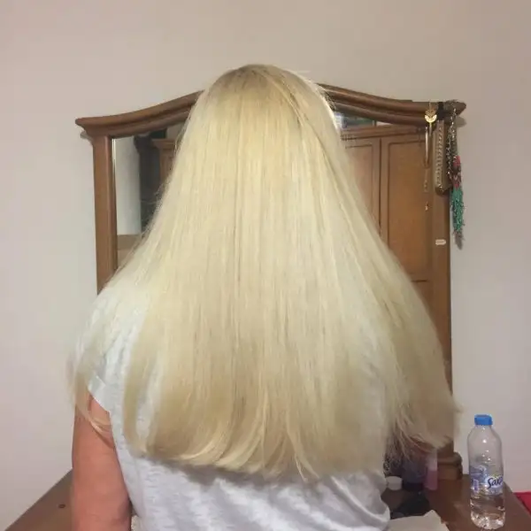 Önce incecik bir tutamda test ettim elbette ve baktım ki evet saçlarda hasar oluşuyor, bildiğin ıslakken çekince uzayan cinsten. Anne bak yanıyor saçların yapmayalım dedim, gel ben normal boya ile tek renk güzel bir sarı yapayım sana halledelim, zaten platin bej senin kullanacağın renk değil, iki hafta sonra ay bu renk olmadı der boyatmaya kalkarsın yine dedin. Gene inatlaştık gene ben kaybettim...