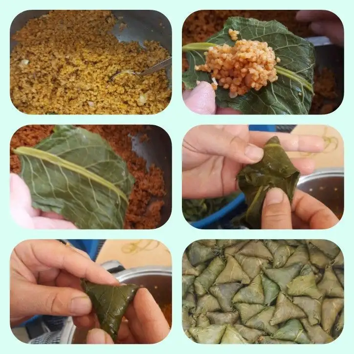 Tereyağını tencereye alıp yemeklik doğradığınız soğanı ekliyoruz salça ve baharatları da ekleyip 1 su bardağı bulguru ilave ediyoruzEki Görüntüle 3313191 Eki Görüntüle 3313190 Eki Görüntüle 3313189 bir buçuk su bardağı su koyup kaynayınca altını kapatıp bulgurun şişmesini bekliyoruz. Soğuyunca sarmaya başlıyoruz. Ben üçgen şeklinde sardım düz de sarılabilir