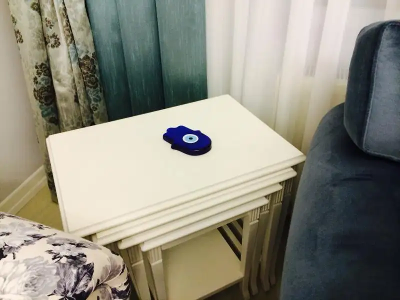 Teşekkür ederim. :) evet beyaZ özellikle yatak odası için korkunç. Yatak olduğu için deli gibi toz oluyor. Özellikle makyaj masası için çok kötü. Çünkü sıvı kozmetikler, far tozları falan malzemeyi bozuyor. Ama çok istemiştim, panel mobilya olmasın, ahşap ya da beyaz olsun derken bu takımın gardolabını çok sevdim bu oldu.Ben çok beğendim. Özellikle yeşilli çiçekli perde çok hoşuma gitti, aynı şekilde koltukların olduğu odanın duvarı da güzel olmuş.