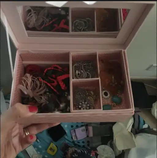 o paylastigim pembe kutu , hepsi var kolye ucu zincir, buyuk kolyeler. toplamda bi 15 tane falan heralde. ne geldi aklina?
