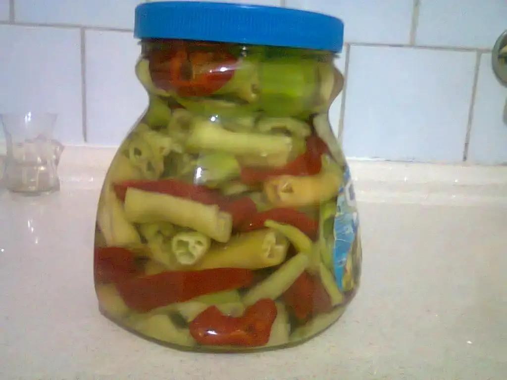 sağol canım tariflerin benimkiler gibi ben acılı olana domatesi rendeliyorum bir bardak sirke, bir bardak yağ, bir bardak su, bir çorba kaşığı tuz , bir çorba kaşığı şeker koyuyorum sonrada acı veya tatlı biberleri içine atıp biraz kaynayınca kavanoza doldurup ters kapatıyorum.