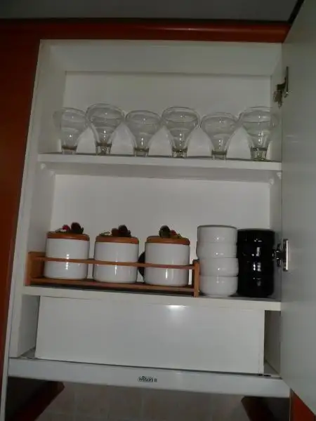 bu bardak dolabım en alt rafta kahve fincanı, kahve su bardağı,kahve yapma makinası var kahve yapcamda hepsini aynı yerde buluorum:)