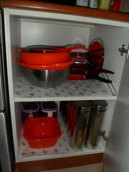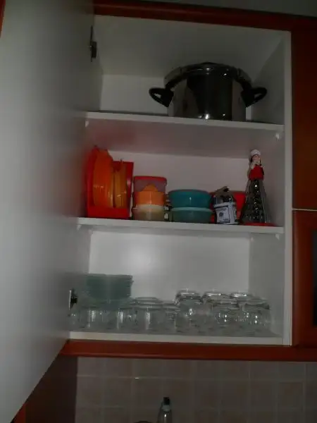 en üstte düdüklü tencerem,orta rafta saklama kapları kesme tahtası ve rendem var en alttada günlük kullandığım su bardaklarım var buzdolabına yakın olsun diye oraya koydum:)