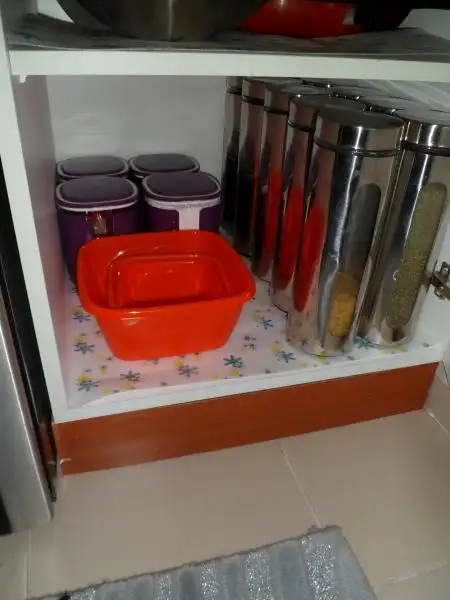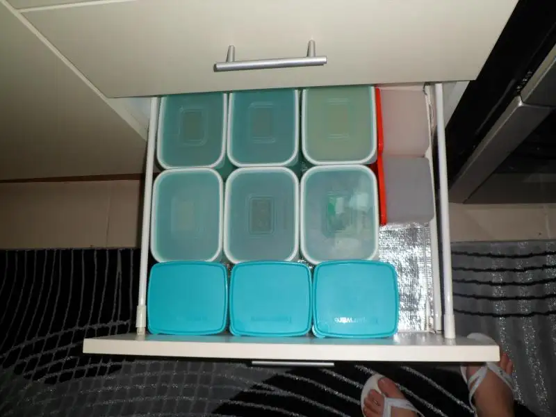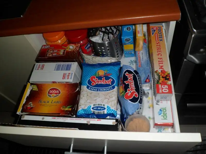 en alt çekmecem burdada saklama kapları var içnde, ince bulgur,tel şehriye,arpa şehriye,patlatmalık mısır,pul biber, kekik, ve fazla aldıgım diğer baharatlar var