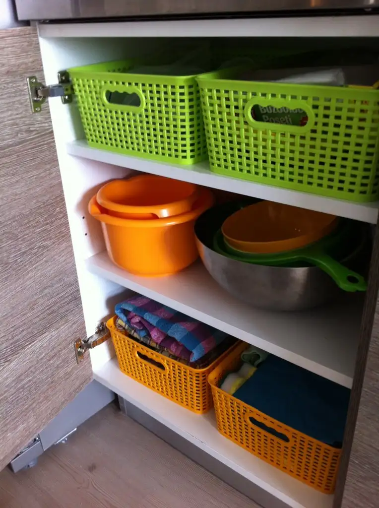teşekkür ederim tatlım, senin baza da ilham oldu bana, bakliyatlar okunuyordur sanırım diğerlerine gelince yeşil olanların birinde saklama kapları diğerinde rende süzgeç buzdolabı poşeti gibi ıvır zıvır var, turuncu olanların birinde sofra örtüleri diğerinde mutfak havluları yedek süngerler yedek bezler falan var, diğer dolaptaki beyaz olanların birinde poşetinde kalan ya da yedekteki baharatlar diğerinde ise boş kahvaltılık kapları var, umarım işine yararHer şey çok düzenli canım maşallah sana kutuların içlerinde neler var bana da fikir olsun