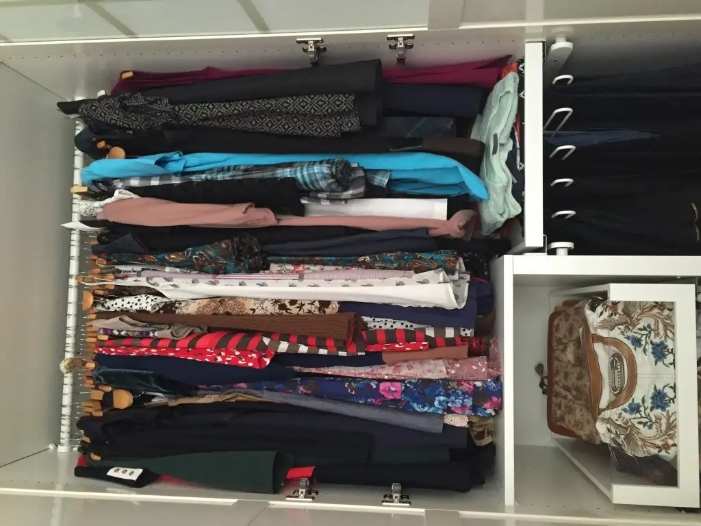 benim gardrop eski model bişey içinde hiç raf yok katlanan çamaşırlardan birini alınca hepsi kafama düşüyo