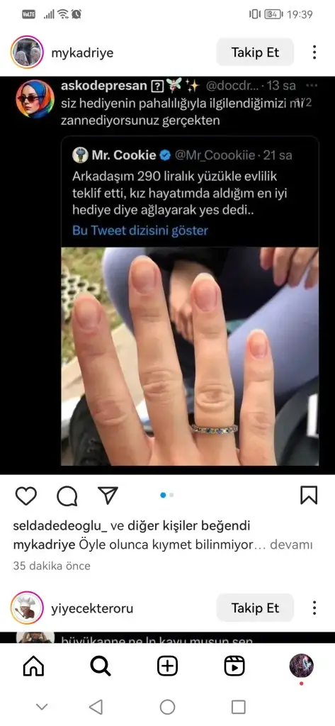 Bence haklisiniz, 20 binlik tektas alamayan adam evlenecegin diye ortaya cikmasinArkadaşlar merhaba sizden bir konuda akıl almak istiyorum. 2 yıldır görüştüğüm bir erkek arkadaşım var işlerinden dolayı evliligi ertelemek zorunda kaldık. Daha sonra bu aralık ayı içerisinde bize geldiler ailelerimizi tanıştırdık. erkek arkadaşım önceden beri güzel bir evlenme teklifi etmek istediğini benimle paylaşmıştı. Bende ben sürprizlerden hoşlanmam edeceksen bana haber ver hazırlanıyim dedim. Ve benim istedgm yüzüğü almak istediğini söyledi . Bende sen hangisini istiyorsan onu al dedim beni götürdü seçtim. Yuzuk yılbaşından önce 20 bindi indirimli fiyatı 0.31 karat. Daha sonra parası cikismadi bende diğer düşük olandan alalım sen kendini zora sokma ben onu beğendim ama sorun degl dedim. Sonra beni tanıdık kuyumcuya götürdü dayisi önermiş. Ben ordaki yüzüğü beğenmedim aklım hep o yuzukte kaldı. Tamam ben onu alcam dedi. Bende peki dedim . Kendisi alcakti. Geçtiğimiz haftada 13 Ocak ta evlenme teklifi etti Bir yer ayarlamış. Yolda giderken bana arabada yüzük gelmemis daha bu yüzüğü verdiler emaneten sipariş ettiğim daha gelmemis tekrar olcunu alcaklarmis garanti olsun diye dedi. Neyse mekana gittik her şey çok iyi evlenme teklifi etti falan . Otururken bana o daha güzel iste bundan 0.24 Karat dedi bende benim beğendiğim o değildi ki dedim. Karistirdim demeye başladı. Sonra param buna.yetti sorun olur mu arkadaşlarım hep mutluluae kimse böyle bir şeyden dolayı kavga etmiyor. Bende sen beni kandırmaya kalktın anlamam diye galiba dedim. Kavga etmeye başladık. Sen bana dürüst davranmadin sorun parası pulu değil senin yüzügune yada Parana ihtiyacm.yok cok şükür elim.ayagm tutuyo çalışıyorm ben dedim . O gün tartıştık iste sonra ben önemsemiyor gbi davrandim tamam önemli degl sadece dürüst olmanı isterdim dedim. Ama iki gündür soğuk davraniyorm o da farkında dün sürpriz yapmış evimin önüne.gelmis ama benim kafam karışık aileme bile anlatmadım. Haftaya sozum olacak lütfen kendinizi benim yerime koyun.