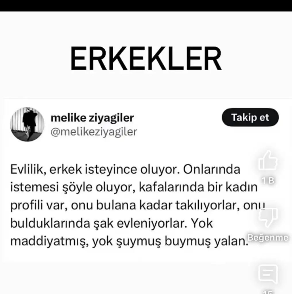 Yani demem o ki evlilik gerçekten erkek isteyince oluyor, gerçekten doğru kişiyi bulunduğunu düşünüyorsa da en başından bunu belli ediyor. Üzülme, karşına mutlaka başkası çıkacak daha yaşın küçük. Bunlar da hep deneyim.
