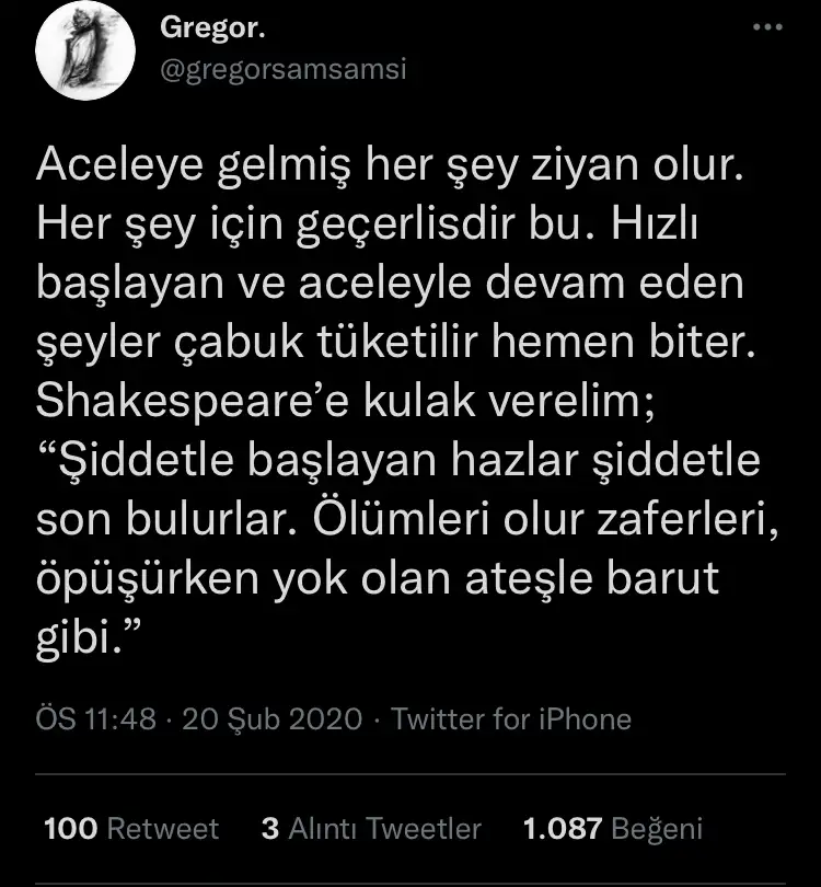 Şu an 2 aydır tanıdığım 1 aydır da sevgilim olan birisi var hayatımda. Ortak arkadaşlarımızın olduğu, yaşadığımız yerin küçük olması sebebiyle ailesini, işini gücünü, karakterini, arkadaş çevresini yakından gözlemleyebildiğim biri. Ve derler ya efendi erkek yerine piç tercih edilir diye, bu kişi orada geçen “efendi” erkek kategorisinde tanıdığım kadarıyla.