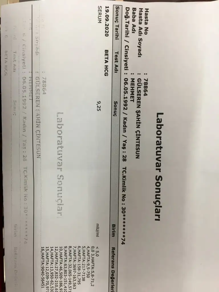 7. Gün için fena bir sonuç değil ama işte bu kadar erken yapmanın faydası olmuyor. 3 gün sonra bir daha yaptır artmış ve şöyle 30-40 ın üstünde çıkarsa biraz daha sevinebilirsin. Sonra tekrar ikiye katlarsa tam sevinirsin:)Allah razı olsun hepinizden sonuç bu ? Bilgili olan
